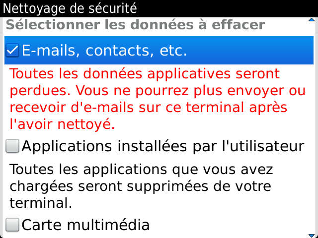 Il existe pour cela une option afin d’effacer complètement le contenu de votre blackberry.