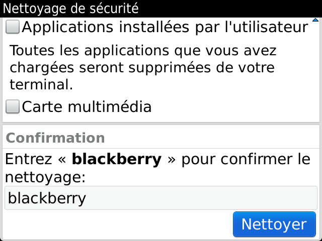 Afin d’etre sur que vous ne faites pas une erreur, vous devez saisir blackberry dans le champ texte pour confirmer.