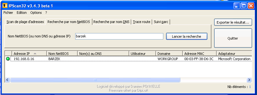 Il est aussi possible de trouver une machine a l’aide de son nom avec l’onglet Recherche par nom Netbios :