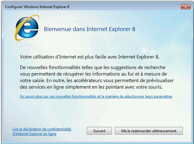Voici comment désactiver l’assistant au premier démarrage d’Internet Explorer 8